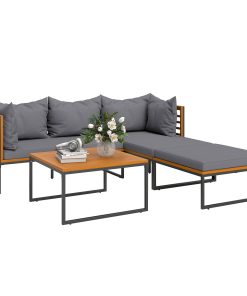 Outsunny Conjunto de Jardín Exterior de 4 Piezas Muebles Jardín Exterior en Forma de L con 2 Sofás de 2 Plazas Sofá de Esquina y Mesa de Centro de Madera de Acacia con Cojines Acolchados Gris y Teca