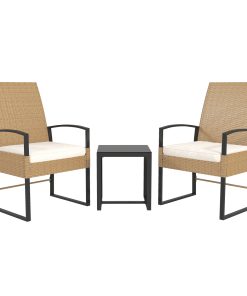 Outsunny Conjunto de Jardín Exterior de 3 Piezas Juego de 2 Sillas y Mesa de Ratán con Cojines Acolchados y Encimera de Vidrio Templado para Balcón Terraza Natural