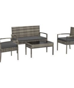 Outsunny Conjunto de Jardín de Ratán Sintético Juego de 4 Piezas Muebles de Jardín con Sofá de 2 Plazas 2 Sillones y Mesa de Centro con Encimera de Cristal y Cojines Extraíbles Natural y Gris