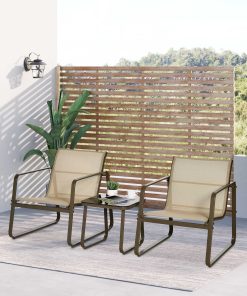 Outsunny Conjunto de Muebles de Jardín 3 Piezas Muebles de Jardín Exterior Incluye 1 Mesa de Vidrio Templado y 2 Sillas con Reposabrazos y Respaldo Transpirable para Terraza Balcón Caqui
