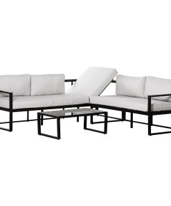 Outsunny Conjunto de Muebles de Jardín 3 Piezas de Aluminio Juego de Muebles con Mesa de Vidrio Sofá de 5 Plazas con Respaldo Ajustable y Cojines Extraíbles 212x70x64 cm Negro y Gris