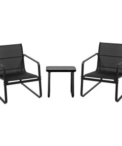 Outsunny Conjunto de Muebles de Jardín 3 Piezas Muebles Exterior Incluye 2 Sillones Apilables con Tela de Malla Transpirable y Mesa de Centro Negro