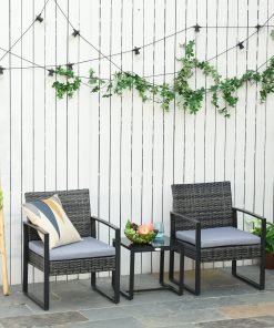 Outsunny Conjunto de Mesa y Sillas de Jardín para Exterior Juego de 3 Piezas Sillas y Mesa de Ratán Incluye 2 Sillones y 1 Mesa de Centro de Vidrio Gris
