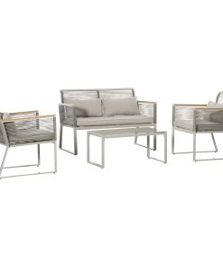 Outsunny Conjunto de Muebles de Ratán y Aluminio Juego de Muebles de Jardín 4 Piezas Mesa de Café Sofá de 3 Plazas y 2 Sillones con Cojines para Terraza Exterior Gris