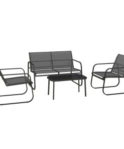 Outsunny Conjunto de Muebles de Jardín Juego de 4 Piezas Muebles de Terraza con 2 Sillones 1 Sofá Exterior de 2 Plazas y Mesa de Centro con Tablero de Vidrio Templado Negro