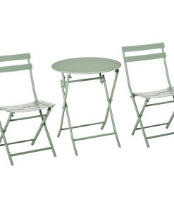 Outsunny Conjunto de Muebles de Jardín Plegable Juego de 1 Mesa Redondo y 2 Sillas de Terraza con Marco de Acero y Respaldo para Balcón Patio Verde Oscuro