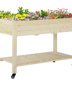 Outsunny Huerto Urbano Mesa de Cultivo 118x55x83 cm Elevado de Madera con Estante Tela Geotextil Ruedas con Frenos Portátil para Cultivo en Jardín Terraza Color Natural