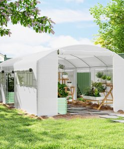 Outsunny Invernadero de Exterior 4x3x2 m Invernadero de Túnel con Puerta y 8 Ventanas de Malla Enrollables Invernadero de Huerto para Patio Jardín Blanco