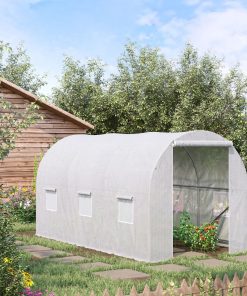 Outsunny Invernadero de Exterior 4,5x2x2 m Invernadero de Túnel con 6 Ventanas de Malla y Puerta Enrollable con Cremallera Invernadero de Huerto Anti-UV para Patio Jardín Blanco
