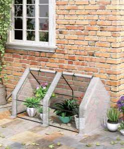 Outsunny Invernadero de Exterior 120x60x60 cm Invernadero de Jardín con 2 Ventanas Enrollables y Marco de Acero para Cultivo de Plantas Verduras Flores Tomates Transparente