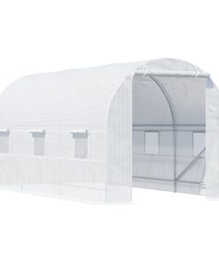 Outsunny Invernadero de Exterior 4x3x2 m Invernadero de Túnel con 2 Ventanas Cubierta de PE Anti-UV y 1 Puerta Enrollable con Cremallera Invernadero para Jardín Patio Blanco