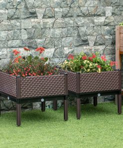 Outsunny Juego de 2 Jardineras de Exterior Jardineras Cuadradas Elevadas Combinación Libre Maceteros para Jardín Patio 50x50x46,5 cm Marrón