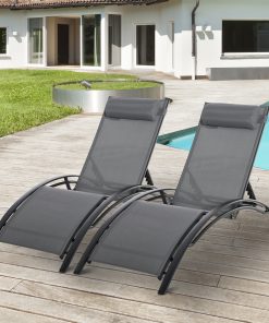 Outsunny Juego de 2 Tumbonas de Jardín Relax con Marco de Aluminio Tumbonas Reclinables con Respaldo Ajustable en 5 Posiciones y Reposacabezas para Terraza Balcón 171x64x82 cm Gris