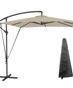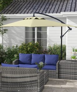 Outsunny Parasol Excéntrico Ø 295 cm Sombrilla de Jardín con Ángulo Ajustable Base Cruzada y Manivela Sombrilla para Terraza Patio Crema