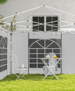 Outsunny Paredes Laterales para Carpa de 2 Paneles 295×195 cm Cortina Lateral de Tela Oxford con Ventana Enrollable y Puerta con Cremallera para Carpa 3×3 m o 3×6 m Blanco
