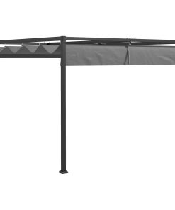 Outsunny Pérgola de Pared de Jardín 4×3 m Gazebo Exterior Cenador con Techo Retráctil Tela de Poliéster y Marco de Acero para Patio Terraza Balcón Gris Oscuro