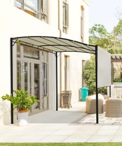 Outsunny Pérgola de Pared 6×3 m Cenador Gazebo con Techo de Poliéster Impermeable y Estructura Metálica Pabellón para Patio Terraza Balcón Crema