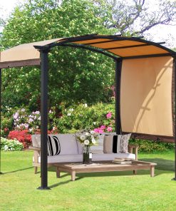 Outsunny Pérgola de Jardín Gazebo para Barbacoa con 10 Ganchos Colgador Techo Curvo Protección BBQ Fiestas al Aire Libre 215x150x220 cm Ocre