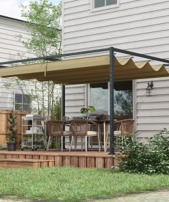 Outsunny Pérgola de Pared 4×3 m Cenador de Jardín con Techo Retráctil de Poliéster y Marco de Acero para Celebraciones Fiestas Bodas Crema y Gris Oscuro