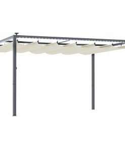 Outsunny Pérgola de Pared de Jardín 4×3 m Gazebo Exterior Cenador con Techo Retráctil Tela de Poliéster y Marco de Acero para Patio Terraza Balcón Crema