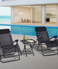 Outsunny Set de 2 Sillas de Gravedad Cero Plegables 90x65x110 cm y Mesa Auxiliar 50x50x50 cm con 2 Portavasos Sillas Reclinables con Reposacabezas para Jardín Terraza Negro