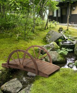 Outsunny Puente de Jardín Puente de Madera con Barandillas en Forma de Rueda Puente para Estanque Carga 150 kg Puente Decorativo para Patio 100x50x37 cm Madera Carbonizada