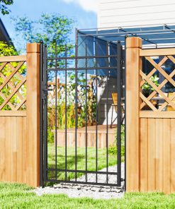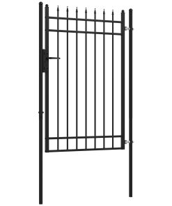 Outsunny Puerta de Jardín Puerta para Valla de Acero Galvanizado con Decoración de Flechas Cerradura y Llaves Puerta para Exterior Patio 107×204 cm Negro