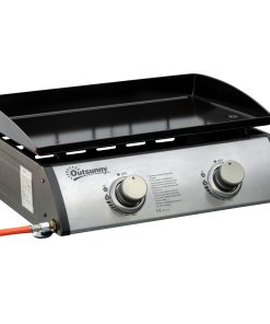 Outsunny Plancha de Gas Sobremesa con 2 Quemadores de Acero Inoxidable 6kW Barbacoa Portátil con Plancha para Picnic Camping 48,5x46x21cm Negro Plata