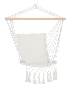 Outsunny Silla Colgante con Borlas Silla Columpio de Algodón Carga 120 kg Sillón Colgante Estilo Moderno para Interior y Exterior Blanco