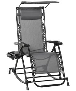 Outsunny Silla Mecedora de Jardín Plegable Tumbona Reclinable con Techo Protección Solar Reposacabezas Extraíble y Reposapiés Estructura de Acero 120x67x102 cm Gris