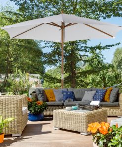 Outsunny Sombrilla de Jardín 3x3x3 m Parasol de Jardín de Bambú con Doble Techo Sistema de Polea Impermeable para Terraza Balcón Exterior Beige