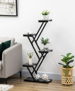 Outsunny Soporte para Plantas de 4 Niveles Estantería de Madera para Macetas con Marco de Acero para Interiores Exteriores Salón Dormitorio 53x24x119,5 cm Negro