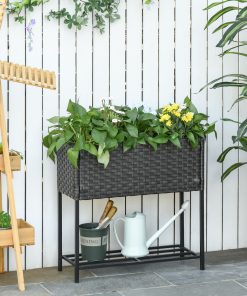 Outsunny Soporte para Jardinera Exterior para Huerto Urbano Mesa de Cultivo Jardinera Rectangular sin Fondo con Estante y Patas para Jardineras Macetas Tiestos 70x30x72 cm Gris y Negro