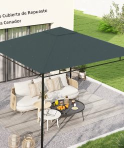 Outsunny Techo de Repuesto 300×300 cm para Cenador de Jardín Cubierta de Repuesto de Gazebo Pabellón Exterior con 8 Orificios de Drenaje y Ventilación Gris
