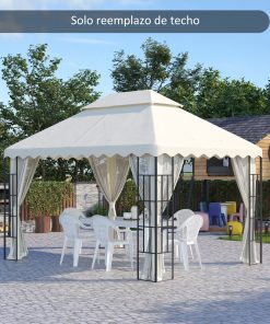 Outsunny Techo de Repuesto para Cenador 3×3 m Cubierta de Repuesto 370g/㎡ con Techo Doble con Mosquitera Protección UV 30+ Toldo de Recambio para Pabellón Gazebo Crema
