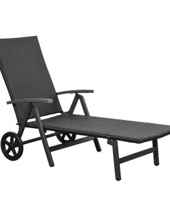 Outsunny Tumbona de Jardín de Ratán 192x74x55 cm con Respaldo Reclinable en 7 Posiciones Reposabrazos y Ruedas Marco de Aluminio para Patio Terraza Balcón Negro